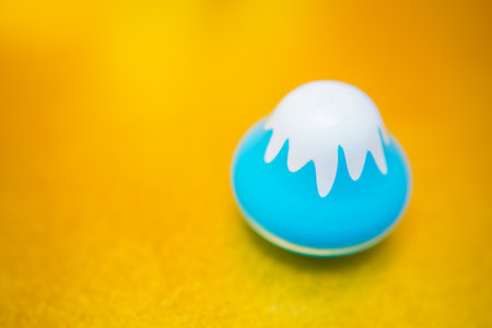 A close-up captures a cheerful yellow ball with a smiling face placed on a surface of brown earth. The vibrant ball is contrasted against a blurred green backdrop, creating depth. The composition focuses on a central subject, potentially suitable for various visual communications and editorial applications.