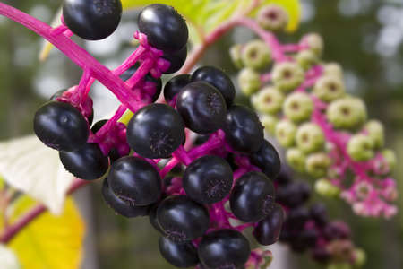 American lakonos with black ripe berries.