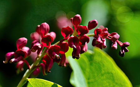 A green plant with red flowers on it. The flowers are small and clustered together. The plant is surrounded by green leaves