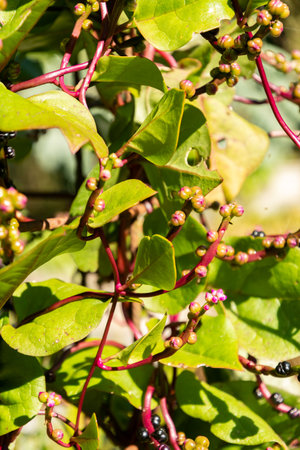 Pokeberry tropical plant with black berries