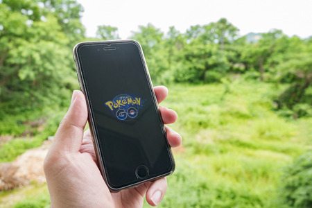 BANGKOK, THAILAND - August 12,2016:iphone user plays Pokemon Go , a free-to-play augmented reality mobile game developed by Niantic for iOS and Android devices.