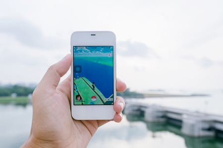 SINGAPORE, SINGAPORE - AUG 8, 2016: Pokemon Go gameplay screenshot on the phone. Pokemon Go is a location-based augmented reality mobile game.