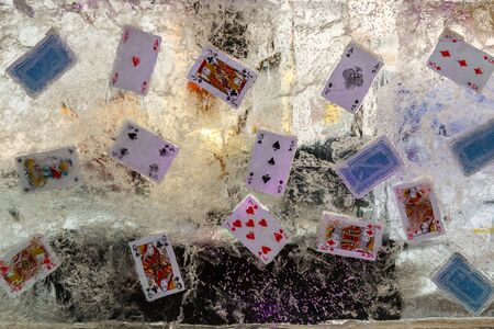 Ice Sculpture And Light Festival in Jelgava, Latvia in February 9, 2019, playing cards inside ice