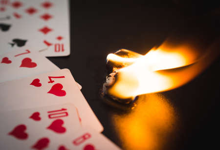 burning dice with playing cards abstract