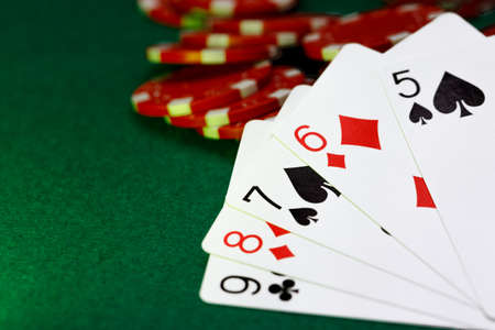 diamonds straight flush with poker chips on green table