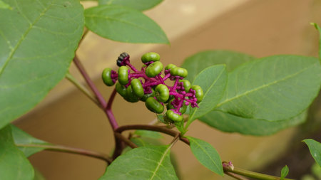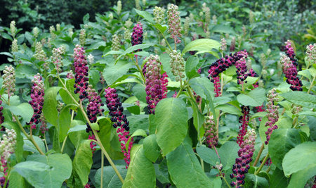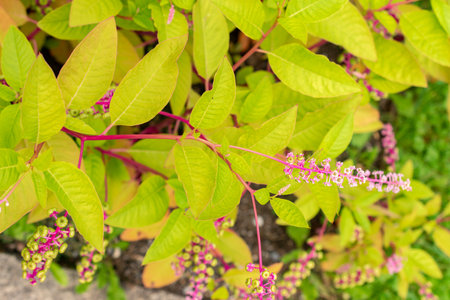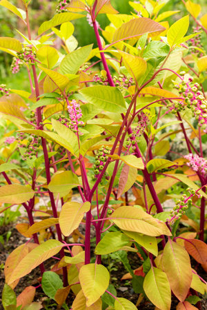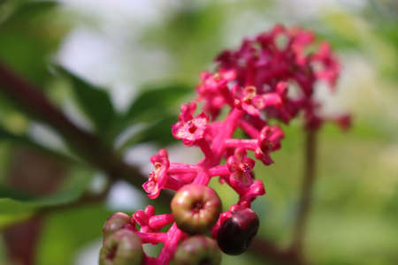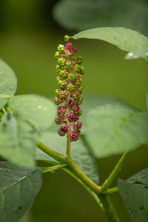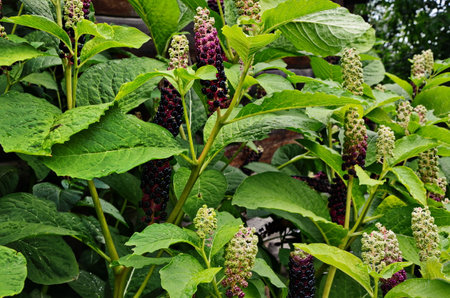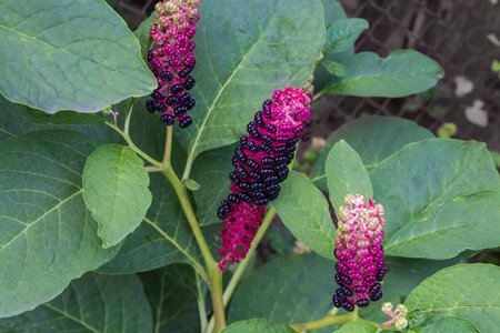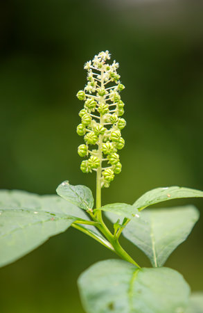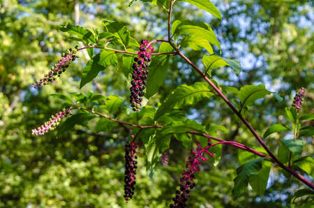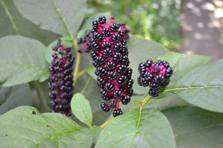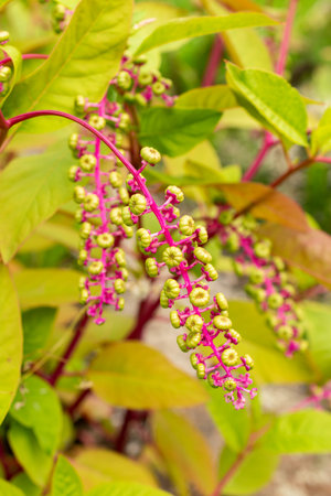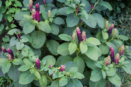 unusual beautiful poisonous plant American lakonos close up grows in the garden