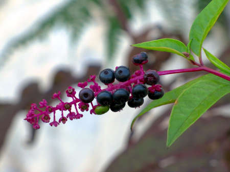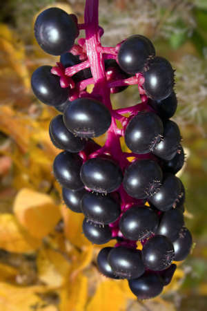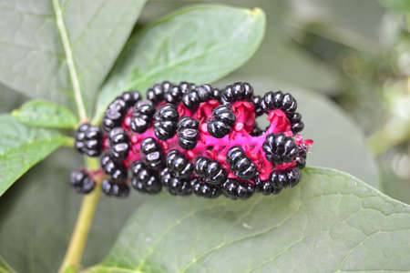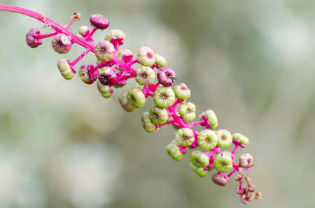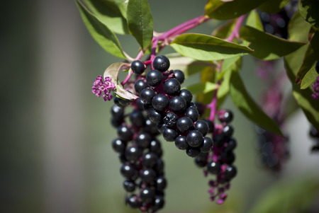Lakonos or Pokeberry. Beautiful bright fruits of the plant of the family Phytolaccaceae