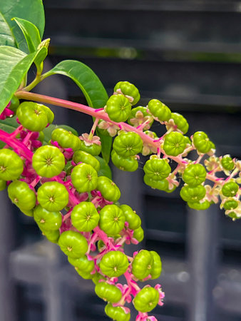 Saint Gallen, Switzerland, July 30, 2025 Phytolacca Americana or american pokeweed plant at the botanical garden
