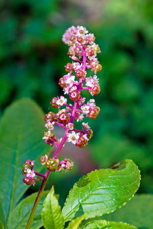 Bloom Phytolacca americana, also known as the American pokeweed is a poisonous, herbaceous, perennial plant