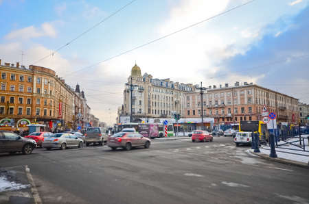 ST.PETERSBURG, RUSSIA - MARCH 4 Nevsky Prospect in March 4, 2012 in St.Petersburg, Russia. Prospect came shortly after founding of city in 18th century. Now it is main street, length of 4.5 km