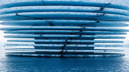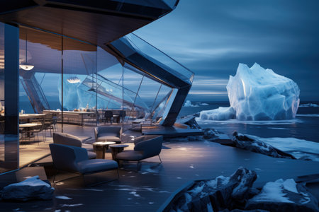 A house of the future built in an iceberg in Anarctica. Future living: innovative house within antarctic iceberg - sustainable design and isolation in the frozen wilderness