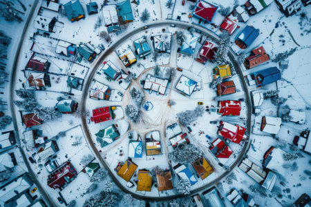A snow-covered village with frosted cottages and quiet, peaceful surroundings.
