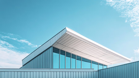 Modern roof with clean lines and a clear blue sky backdrop