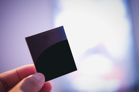 man holding a photo polarizer filter. photo accessory increases image contrast and removes glare from the sun