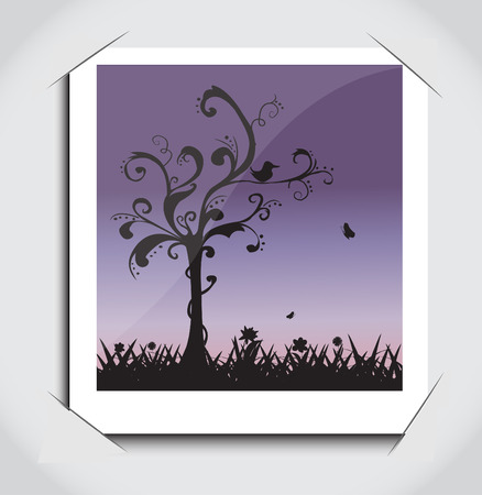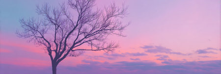 A stunning tree silhouette stands against a soft gradient sky at dusk, framed in a minimalist design, capturing the essence of tranquility and natural beauty.
