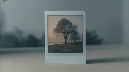Blooming Serenity: Capturing White Flowers on a Polaroid Tree Canvas