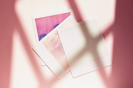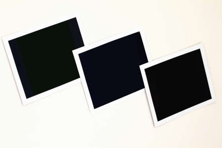 Three instant photos on colored and lighted background , vintage polaroid picture