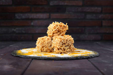 Honey and sesame babouches - popular arabic dessert. Arabic and middle eastern food concept