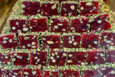 Turkish Delight sweet food in bazaar at historical centre of Istanbul, Turkey.