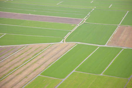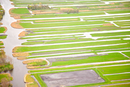 Aerial view of peat excavation meadow landscape with agricultural function near Vinkeveen in the Netherlands