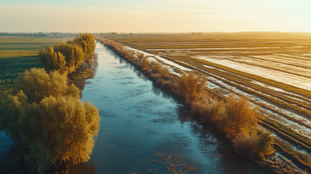Generative AI : Aerial view of canal Eemskanaal and countryside province of Groningen The Netherlands