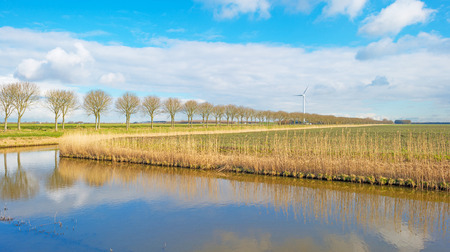 canal in polder between dutch cities zwolle and deventer near river ijssel in the netherlands