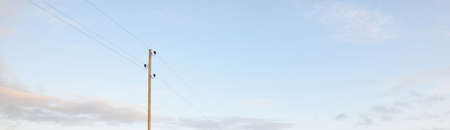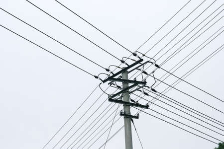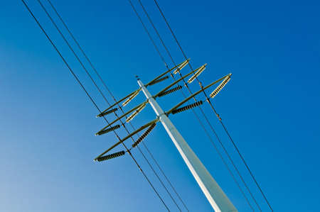 Electrical pole and cables on the clear sky background