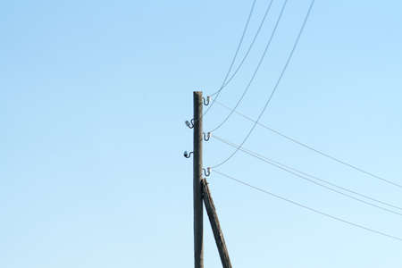 Old pole with wires against the sky. Electric transmission line, Eco-friendly energy