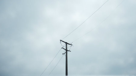 Minimalist telephone pole against a vast, cloudy sky evokes solitude and connection