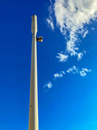 Weston-super-Mare, UK - March 4, 2022: A mobile phone mast seen against a blue sky