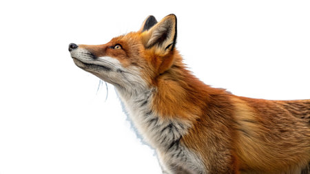 red fox isolated on white background, closeup of head and neck