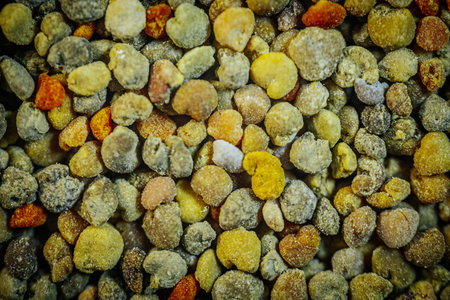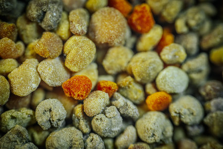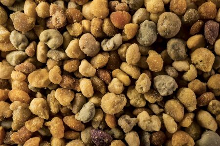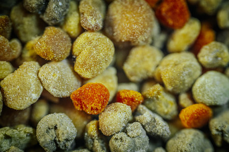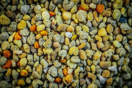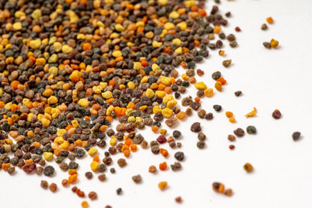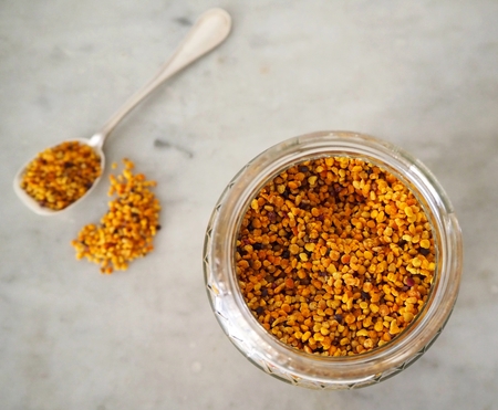 Organic bee pollen, or honey pollen, on a kitchen marble table