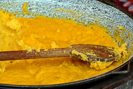 Polenta prepared in a large bowl, at a fair with traditional food. Specific for all area in Romania.