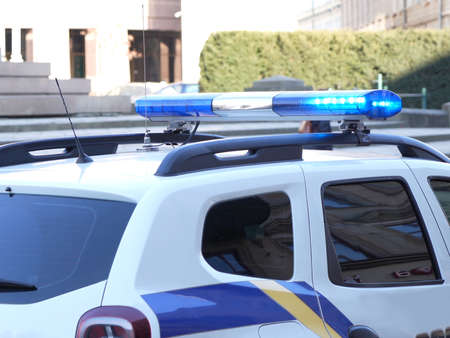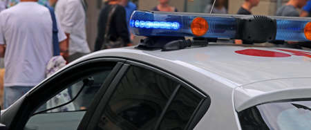 technological blue flashing of the police car during the checkpoint to check motorists