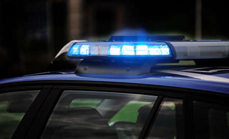 Police car blue lights on a car accident place