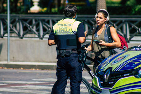 Seville Spain August 11, 2021 Police car patrolling in the streets of Seville during the coronavirus outbreak hitting Spain