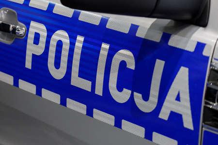 Poland, Poznan - April 08, 2022: The logo of municipal police on police car.