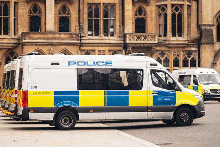 London / UK - 06/27/2020: Metropolitan Police Vans at Parliament Square waiting for Black Lives Matters protesters