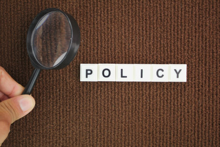 magnifying glass and alphabet letters with word policy. basic concept or condition