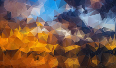 Bright golden and blue low poly grunge glossy geometric background in abstract retro design