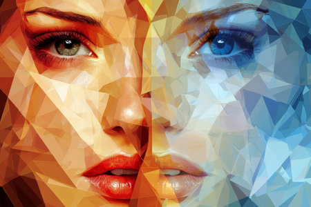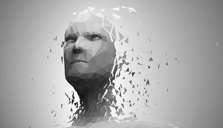 The effect of the appearance of a polygonal digital human face. Artificial intelligence. 3d illustration