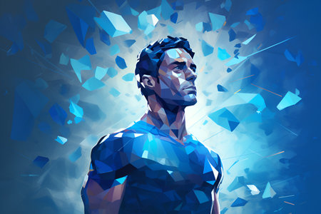 Abstract illustration of blue and white geometrical polygonal abstract shapes against blue background. background with abstract texture with abstract shapes concept
