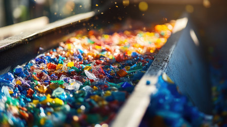 Crushed Recycled Plastic Granules Were Converted Into Fresh, Reusable Material, Hue. Generative AI