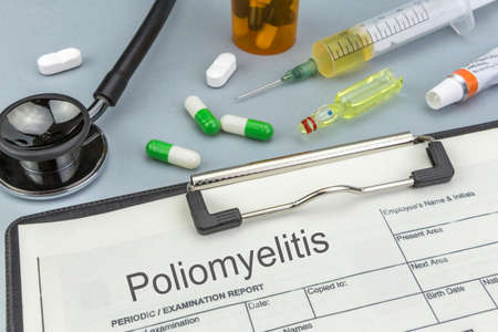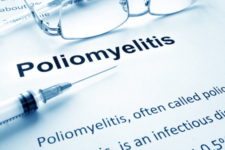 Paper with diagnosis Poliomyelitis. Polio vaccination concept.