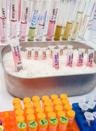 Blood samples for analysis of infected blood samples in a laboratory. Coronavirus test.