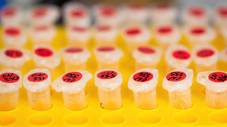 Test tubes with biomaterial in the laboratory. concept of medical, chemicals or scientific laboratory research and Innovation in the laboratory.