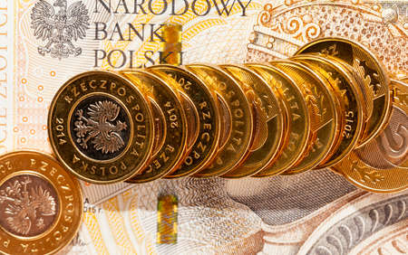 Polish Zloty. Official Currency of Poland in Denominations. Zlotych Macro Shot. Bank of Poland, Narodowy Bank Polski.