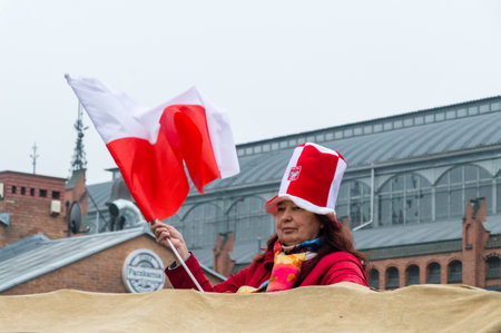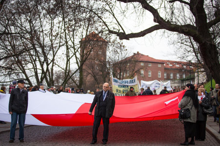KRAKOW, POLAND - NOV 11: Unidentified participants celebrating National Independence Day an Republic of Poland, Nov 11, 2013 in Krakow, Poland. Is a public holiday, celebrated every year from 1918.