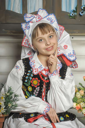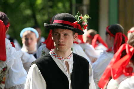 ROMANIA, TIMISOARA - JULY 7, 2016: Teenager from Slovakia in traditional costume, present at the international folk festival, International Festival of hearts organized by the City Hall Timisoara.