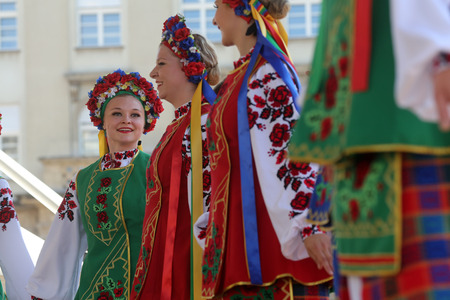 Members of folk group Edmonton Alberta , Ukrainian dancers Viter from Canada during the 48th International Folklore Festival in center of Zagreb,Croatia on July 17, 2014